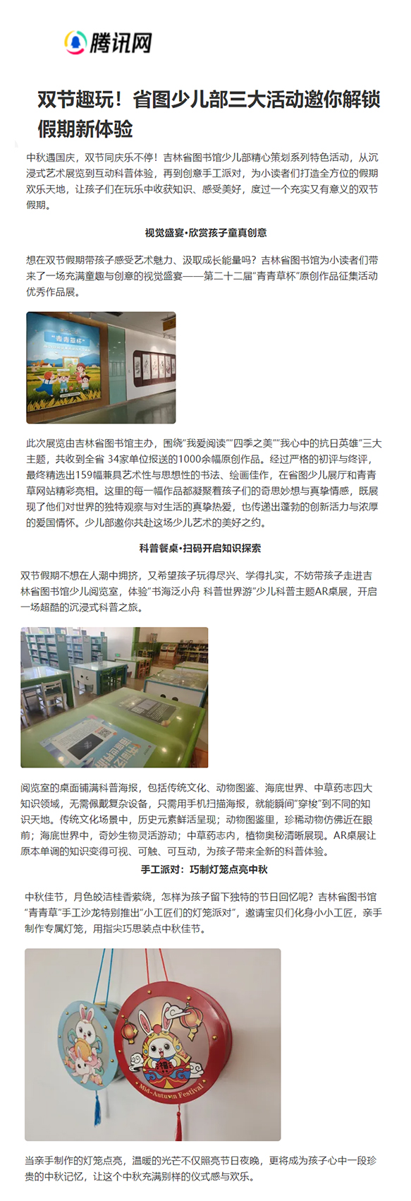2025.9.30 《腾讯网》双节趣玩!省图少儿部三大活动邀你解锁假期新体验