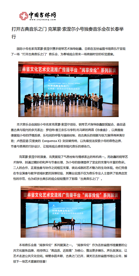 2025.11.17 《中国吉林网》打开古典音乐之门 克莱蒙·索涅尔小号独奏音乐会在长春举行