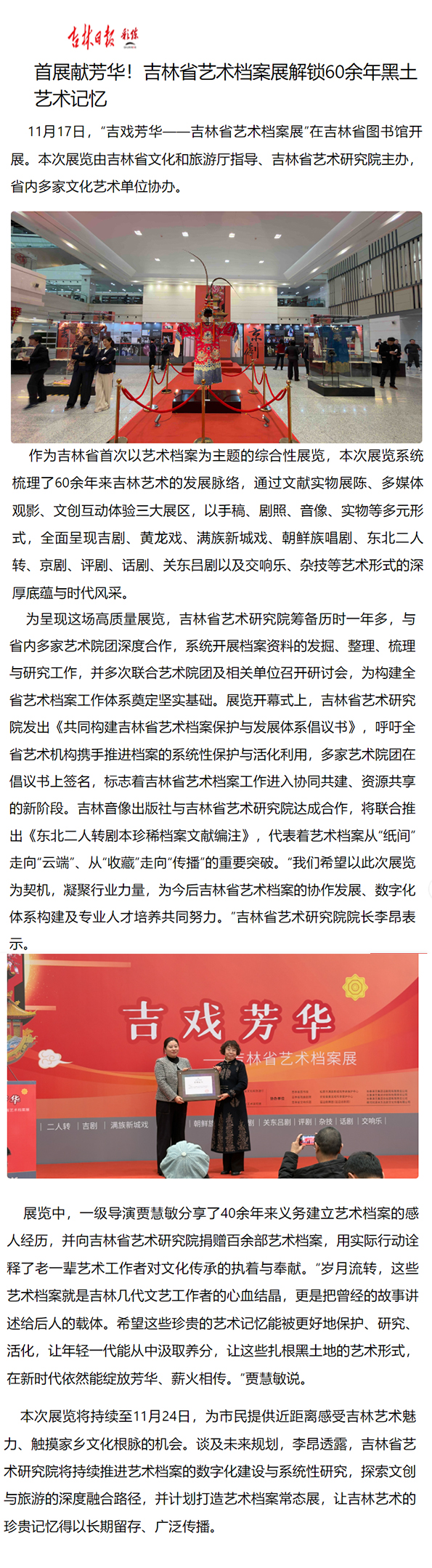 2025.11.17 《吉林日报彩练》首展献芳华!吉林省艺术档案展解锁60余年黑土艺术记忆