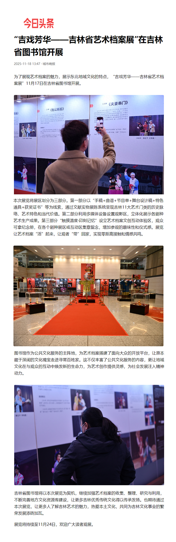 2025.11.18 《今日头条》 “吉戏芳华——吉林省艺术档案展”在吉林省图书馆开展