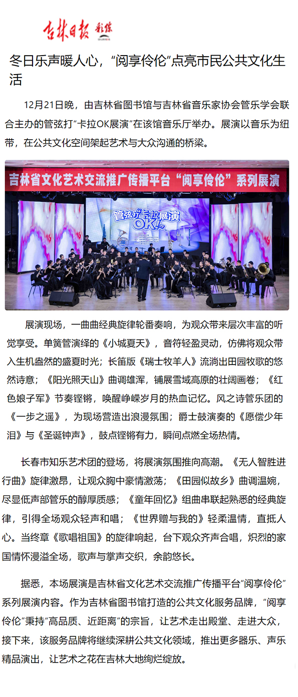 2025.12.22 《吉林日报彩练》 冬日乐声暖人心,“阅享伶伦”点亮市民公共文化生活