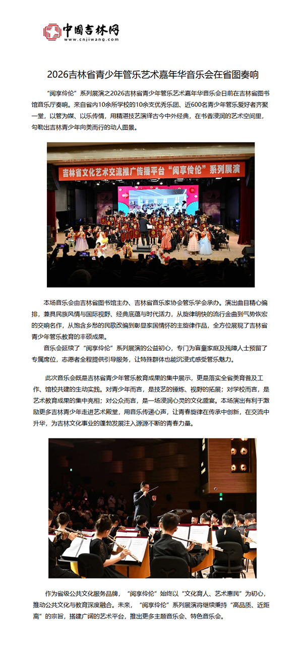 2026.1.19 《中国吉林网》 2026吉林省青少年管乐艺术嘉年华音乐会在省图奏响