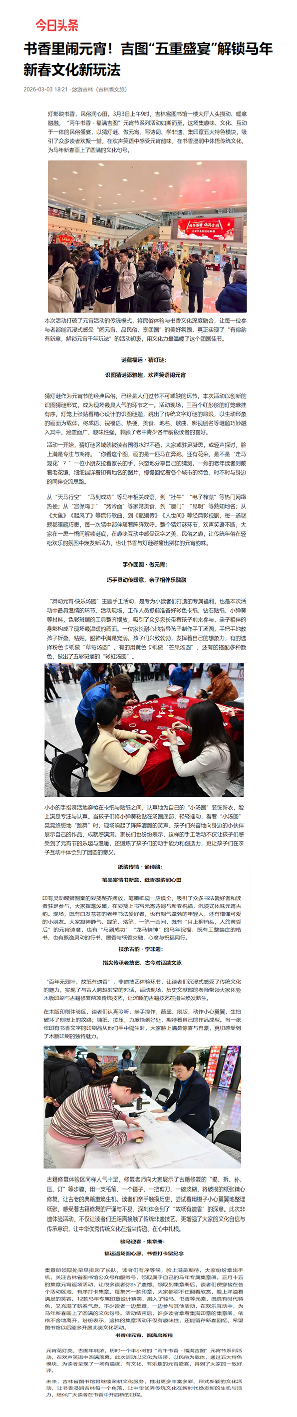 2026.3.3 《今日头条》 书香里闹元宵!吉图“五重盛宴”解锁马年新春文化新玩法